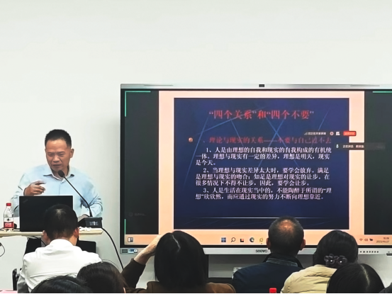 陈柒叁研究员围绕“高校机关工作能力提升”与“会务工作及接待”两大主题展开系统讲解。他首先阐述了机关工作的五大核心特点:以全局性为基本定位,强调机关工作服务于学校整体发展;以专业性为核心要求,遵循科研规律,优化科研申报、经费报销等流程管理;以政策性为根本遵循,深入贯彻党的二十大报告等文件精神;以服务性为价值导向,立足“服务大局、服务基层、服务专家”;以科学性为支撑保障,推进管理规范化、高效化。